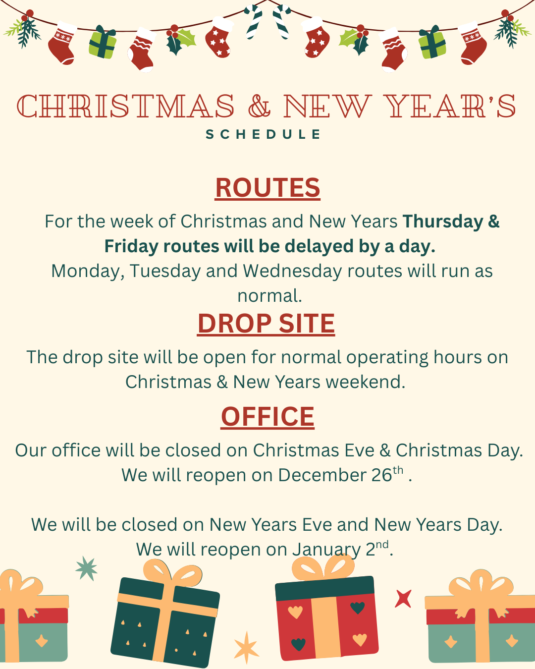 2025 Christmas & New Years Schedule Published December 23, 2025 at 1080 × 1350 in Public Notices ← Previous